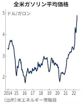 全米自動車協会(AAA)によると、1年前に比べて約6割高くなった。夏の行楽シーズンに入り、ドライブ需要が増加していることなどが価格を押し上げた。車社会の米国では自家用車で通勤する人が多く、家計に打撃を与えている。